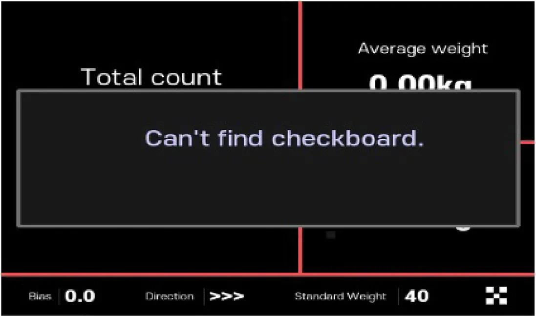 못한 경우입니다. 체커 보드판이 카메라 중앙에 수평으로 놓여있는지 다시 한번 확인 후, 다시 시도해 주시길 바랍니다. 보드판이 오염되었을 때도 카메라가 인식하지 못할 수 있습니다.
